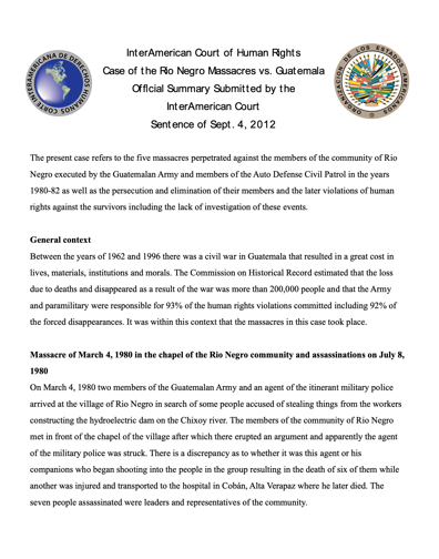 Juan de Dios and witnesses to the Rio Negro massacres testified before the InterAmerican Court of Human Right in Costa Rica on June 19 and 20, 2012.